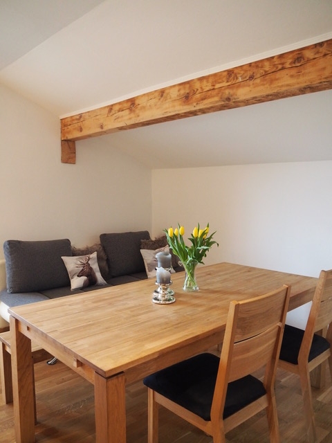 Die Wohnung mit 80qm befindet sich im 2. Stock und bietet genügend Platz für 2-6 Personen. Die zwei Schlafzimmer sind aufgeteilt in ein 3-Bettzimmer und ein Doppelzimmer mit je einem eigenen Bad. Vom eigenem Balkon können sie den wunderschönen Ausblick auf Lofer und die umliegende Bergwelt genießen. Im Wohnzimmer gibt es noch die Möglichkeit die Couch zu einem Bett auszuziehen. Der Wohn-Essbereich lädt zum gemütlichen Beisammensein ein. Die moderne Küche ist ausgestattet mit einem Herd, Backofen, Geschirrspüler, Kühlschrank mit Gefrierfach, Wasserkocher, Filterkaffeemaschine, Nespresso Maschine und natürlich alles Selbstverständliche wie Teller, Gläser, Besteck, Töpfe...